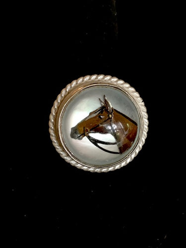 Vintage Reverse Painted Horse Crystal Ring